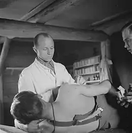 Heikki Ilmari Savolainen (28 September 1907 – 29 November 1997) was a Finnish artistic gymnast. He competed in five consecutive Olympics from 1928 to 1952 and won at least one medal in each of them.[1] In 1928, he won a bronze on pommel horse, which was the first-ever medal in gymnastics for Finland. Winning his last medal at the 1952 Summer Olympics in Helsinki, he became the oldest gymnastics medalist, at 44 years old; he delivered the Olympic Oath in the opening ceremony of those games.[2] In 1932, Savolainen and his teammate Einari Teräsvirta had the same score on horizontal bar, but the Finnish team voted to give the silver medal to Savolainen. In 1948, he again had the same score as teammates Veikko Huhtanen and Paavo Aaltonen on pommel horse, and the gold medal was shared between the three.[3]