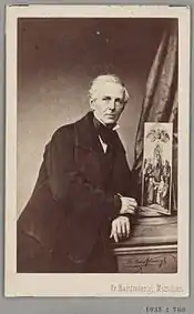 Hess studied at the Academy in Munich from 1813-1817 under Johann Peter von Langer.[2] Heinrich Hess's skills and reputation attracted the attention of King Maximilian, who sent him in 1821 to Rome, with a stipend, During his four years there, he came under the influence of Johann Friedrich Overbeck. A copy Hess made of Raphael's Parnassus, and the study of great examples of monumental design, probably caused him to become a painter of ecclesiastical subjects on a large scale. In 1826 he was made professor of painting and later, director of all the art collections at Munich.[1]
