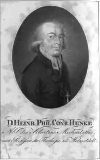 Heinrich Philipp Konrad Henke (3 July 1752 – 2 May 1809), German theologian, best known as a writer on church history, was born at Hehlen, Brunswick-Lüneburg.[1] He was the father of historian Ernst Ludwig Theodor Henke (1804–1872).