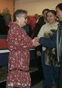 Helen Mamayaok Maksagak, CM (April 15, 1931 January 23, 2009) was a Canadian politician. She served as the commissioner of the Northwest Territories from January 16, 1995, until March 26, 1999, and as the first commissioner of Nunavut from April 1, 1999, until April 1, 2000. She is a notable Copper Inuk.[1][2] Born on the land near Bernard Harbour in the Canadian Western Arctic, Maksagak was raised in Tuktoyaktuk, Aklavik and the Bathurst Inlet area and eventually settled in Cambridge Bay to raise a family of six surviving children with her husband, John Sr. Together, they were stalwart supporters of the growing indigenous rights movement in the Canadian north. Their home was often a stopping place and site of discussions when young Inuit involved in negotiating the Nunavut Land Claims Agreement or participating in Northwest Territories political life passed through the community.