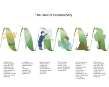 The helix of sustainability[1][2][3] is a concept created as a representation of the total systems approach to gain full advantage from manufacturing with sustainable materials, particularly biopolymers and biocomposites. In 2004 the concept was presented by Professor John Wood, then Chair of the Materials Foresight Panel at a DTI event hosted by the then Secretary of State for Industry (Jacqui Smith).[4] In the same year it was also used in the European Science Foundation exploratory workshop on environmentally friendly composites.[5]