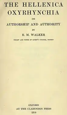 - ↑ e.g. Goligher, W. A. (1908). "The New Greek Historical Fragment Attributed to Theopompus or Cratippus". English Historical Review. Oxford University Press. 23 (90): 277–283. doi:10.1093/ehr/xxiii.xc.277. JSTOR 550009.