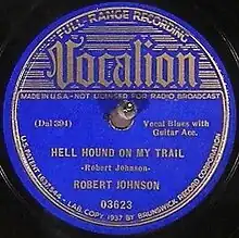 "Hellhound on My Trail" (originally "Hell Hound on My Trail") is a blues song recorded by Mississippi Delta bluesman Robert Johnson in June 1937 and released as a 78 rpm single on Vocalion Records that September. It was inspired by earlier blues songs[1] and blues historian Ted Gioia describes it as one of Johnson's "best known and most admired performances—many would say it is his greatest".[2]