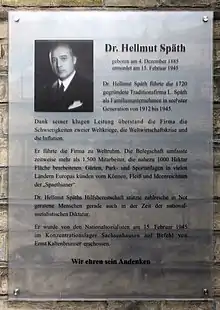 In 2009, a Stolperstein (small, cobble stone-sized memorial plaque) was installed at his old school, Landesschule Pforta, to commemorate Späth as a victim of the Nazi regime.[2]