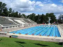 Helsinki Swimming Stadium is an outdoor swimming venue in Helsinki, Finland, located in the Eläintarha area to the northeast of the Helsinki Olympic Stadium.