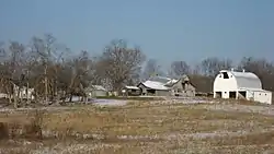 Helton–Mayo Farm is a historic farm and national historic district located in Shawswick Township, Lawrence County, Indiana. The house was built about 1837, and is a 1+12-story Federal style, hall and parlor plan brick dwelling. It has a side-gabled roof and rear ell. Also on the property are the contributing Midwest triple portal barn (c. 1835–1845), wellhouse, corn crib, buggy shed, garage (1920s), and round roofed barn (1950).[2]