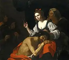 In later compositions de Somer reflects influences deriving from the example of other Neapolitan masters who asserted themselves in those years, such as Massimo Stanzione and Bernardo Cavallino. Hendrick's palette moved gradually away from the tenebrism of Ribera and opened up to the neo-Venetian color, which in that period came to replace the chiaroscuro of the Caravaggisti.[6] Works like his multiple versions of Lot and his daughters and his Samson and Delilah are examples of this evolution.[12]