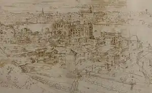 Some of the Italian views, made in Rome and Milan, can be dated between 1565 and 1568. It is therefore likely that the views of France date from shortly before or shortly after these years and were made during Gijsmans' outward journey to, or his return from, Italy.[4]