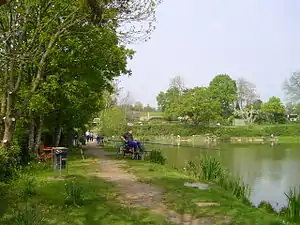 Bitterwell Lake, also referred to as Bitterwell Pond, is situated near the junction of roads leading to Coalpit Heath and Ram Hill. This man-made lake is used as a fishing lake and is owned by Westerleigh Parish Council, and used for bathing, fishing, model yachting and boat hire. It was acquired by the Parish Council in 1930, once owned by the Coalpit Heath Colliery Company.The company used it to soak the pit props for the mine.[7] The lake is over 3 acres in extent and at the time of purchase was surrounded by numerous stone and tiled buildings and two detached cottages with gardens.[8]