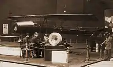 In 1910, in the workshop of Gianni Caproni, he designed and built an aircraft known as the Coandă-1910, which he displayed publicly at the second International Aeronautic Salon in Paris that year.[5] The aircraft used a 4-cylinder piston engine to power a rotary compressor which was intended to propel the craft by a combination of suction at the front and airflow out the rear instead of using a propeller.