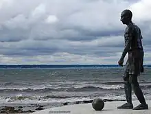 Celtic met Portuguese side Boavista in the semi-final.[82] Boavista took the advantage on away goals after a 1–1 draw in the first leg, in which Larsson scored the equaliser after missing a penalty.[83] In the second leg, Larsson struck for Celtic after a one-two with John Hartson with ten minutes remaining. The goal sent Celtic through to their first European final since 1970.[84] The final in Seville against Porto saw Larsson equalise twice with two headers, although Celtic eventually lost 3–2 after extra time.[68] Larsson also finished runner-up to Porto's Derlei in the competition's goalscoring charts. Larsson described the pain of the defeat as being the worst moment of his career, including his broken leg in 1999.[85] More disappointment followed, as Celtic finished runners-up to Rangers on the last day of the SPL season, by only a single goal on goal difference.[86] 2003 also saw Larsson voted as the Greatest Swedish Footballer of the Last 50 Years as part of the UEFA Jubilee Awards.[87] He also finished the season again the top SPL goalscorer with 28 goals from 35 games.[66][67] Larsson ranked 14th (in 2001) and 12th (in 2003) in the final standings for the Ballon d'Or.[88]