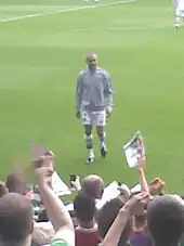 Larsson's next appearance at Old Trafford in fact came against United, the day after his loan with the club expired, as captain for the Europe XI team in the UEFA Celebration Match.[134][135] Larsson received a standing ovation from the home fans upon being substituted for Liverpool player Robbie Fowler.[136]