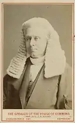 Brand entered parliament as MP for Lewes as a Liberal in 1852, then returned as one of the three members for Cambridgeshire in 1868 (displacing colleague Richard Young (MP) of Wisbech, and for some time was Chief Whip of his party.[1] He was a Lord of the Treasury during the first Palmerston ministry, and Parliamentary Secretary to the Treasury during the second. At some point, he was Keeper of the Privy Seal to the Prince of Wales. In 1872 he was elected Speaker of the House of Commons, and retained this post till February 1884. It fell to him to deal with the systematic obstruction of the Irish Nationalist Party, and his speakership is memorable for his action on 2 February 1881 in refusing further debate on W. E. Forster's Coercion Bill—a step which led to the formal introduction of the closure into parliamentary procedure.[2] He was appointed a GCB in 1881 and on his retirement he was created Viscount Hampden, of Glynde in the County of Sussex. In 1890 he also succeeded in the barony of Dacre on the death of his brother.