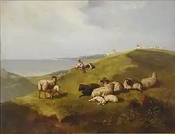 Landscape with cattle (RA, 1846 - collaboration with Frederick William Hulme) • River Avon, near Bristol, with the Tower of Cook's Folly • A Quiet Homestead in Surrey (British Institution, 1855) • Early Morning - going a-field (1855 Paris Exposition) • A sunny scene on the Severn (1855 Paris Exposition) • Lights and shadows on the Conway (Society of British Artists, 1855) • Scene in the valley of the Lleddr (Liverpool Academy, 1855) • Harvest Horses (1856) • A Family Group (British Institution, 1857) • Oxen, Mid-Day Rest • Blessings of a shepherd's life (1862) • Harvesting in SussexHarvesting:Sunset (1863, watercolour) • Highland Cattle (1866) • Ben Cruachan cattle coming south (1867) • Farm Horses (RWS, 1867) • View near Coal Pit Heath (Bristol Society of Artists, 1840)[6] • Hastings Castle by Moonlight • View of the Castle of Kautz (watercolour) • Drover with cattle watering • Landscape with sheepherder and dog • Landscape with figure on a Log in the Foreground (watercolour) • A Group of Cows (1871).