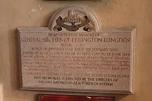 Memorial to General Sir Henry Errington Longden, Lincolnshire Chapel, Lincoln Cathedral