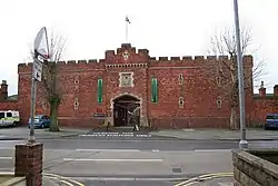 - Lincoln, The Drill Hall, Broadgate. 1890. The architect was Major F. H. Goddard of Goddard and Co. It was built at the cost of £10,000 which was funded by Joseph Ruston. It was created as a result of the 1863 Volunteer Act and was to provide drilling facilities for the 1st Lincolnshire Volunteer Battalion.[46]