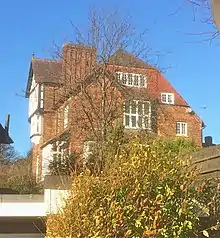 - St Michael's Vicarage, Gibraltar Hill, Drury Lane, Lincoln.1882. Prominently sited overlooking Lincoln from just below the Castle. Arts and Crafts style with tile hanging and upper part of projecting gable half timbered. Brick arcaded chimney stack. Built for the Rev. G. B. Jamieson[56]