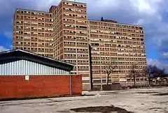 Gang activity plagued the housing project for decades, beginning in the mid–1970s. The gangs, such as the Blackstone Rangers (which became known later as El Rukn), assert authority over the area and residents are often in the middle of gang warfare and criminal activity.[3] By the mid–1980s, several gangs dominated the housing project; Gangster Disciples, Four Corner Hustlers, Traveling Vice Lords and Gangster Stones. In October 1969, 20–year old resident Michael Soto was shot to death by a Chicago police officer after being targeted, due to his protesting for a traffic light. Soto and a friend were chased by police after being falsely accused of robbing a man near the project, which led to a "shootout" between Soto and the officers. In the incident, ten police officers and a little girl were injured.[4] In May 1975, Chicago police patrolman Joseph Cali was shot to death at the project by sniper fire while writing a ticket for an illegally parked vehicle; three men were charged with his death.[5] Aside from gangs, the housing projects experienced issues with sexual assaults in high numbers; most notably the June 1985 rape and murder of a child resident. On June 10, 1985, five–year old Shavanna McCann was raped and killed by a 17–year old juvenile who visited the project. The assailant, Johnny Freeman, lured McCann to a vacant apartment on the 13th floor of the 2111 W. Lake Street building. Freeman raped her and threw her from a window to her death.[6][7]