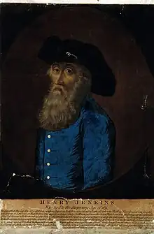 Henry Jenkins (buried on 9 December 1670 in Bolton-on-Swale, North Riding of Yorkshire) was an English supercentenarian claimant said to have been 169 years old at his death.[1]