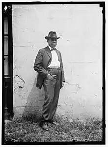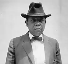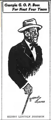 Johnson's role was that of the chief dispenser of political patronage to black Republicans in the state, at a time when their ability to elect representatives of their choice was being limited by voter fraud, suppression and, in 1909, constitutional amendments and laws passed by white Democrats in the state legislature that disenfranchised most black voters.[4] Blacks continued to be a loyal and important component of the Republican Party coalition in the era. Johnson was described by one journalist of the era as a "tall figure with an oratorical turn of phrase and an emphatic style of expression."[5]