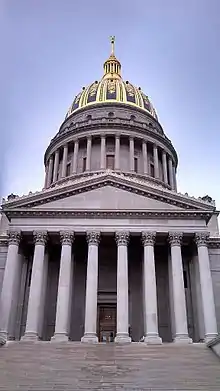 West Virginia State Capitol in Charleston, West Virginia. Charleston was made the state's permanent state capital during Mathews' administration.[28]