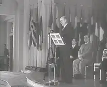 Morgenthau addressing delegates on the opening day of the Bretton Woods Conference