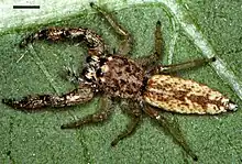 - Maddison, W. P.; Evans, S. C.; Hamilton, C. A.; Bond, J. E.; et al. (2017). "A genome-wide phylogeny of jumping spiders (Araneae, Salticidae), using anchored hybrid enrichment". ZooKeys (695): 89โ101. doi:10.3897/zookeys.695.13852. PMC 5673835. PMID 29134008.