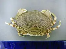 6. 1 2 3 4 5 6 7 Miazaki, Lizandra Fernandes; Simões, Sabrina Morilhas; Castilho, Antonio Leão; Costa, Rogério Caetano (2018-09-05). "Population dynamics of the crab Hepatus pudibundus (Herbst, 1785) (Decapoda, Aethridae) on the southern coast of São Paulo state, Brazil". Journal of the Marine Biological Association of the United Kingdom. 99 (4): 867–878. doi:10.1017/s0025315418000620. ISSN 0025-3154. S2CID 92443059.