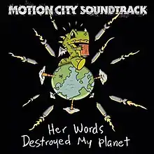 "Her Words Destroyed My Planet" is a song by American rock band Motion City Soundtrack, released on December 1, 2009, as the second single from the group's fourth studio album, My Dinosaur Life (2010). The song's music video was released on January 7, 2010.