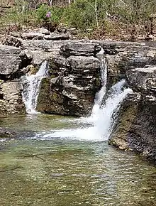 The Hercules Glades Wilderness is a 12,314-acre (50 km2) wilderness area in Taney County in the Ozarks of southwest Missouri. The United States Congress designated it a wilderness in 1976,[1] making it the oldest wilderness area in Missouri. It is one of eight wilderness areas in the Mark Twain National Forest[2] and is within the Ava-Cassville-Willow Springs ranger district, about 10 miles (16 km) northeast of Branson, Missouri. Hercules Glades Wilderness derives its name from the open limestone glades (balds) that dot its landscape. The high points of Coy Bald and Pilot Knob stand 600 feet above Long Creek and offer splendid views of the drainage. Near the middle of the wilderness area is the main set of waterfalls, though Long Creek has several other smaller waterfalls and cascades along its path.