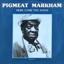 "Here Comes the Judge" is a song by American soul and comedy singer Pigmeat Markham, first released as a single in 1968 on the Chess label.[2] The record entered the UK Singles Chart in July 1968, spending eight weeks on the chart and reaching number 19 as its highest position.[3] The song originated with his signature comedy routine "heyeah (here) come da judge", which featured Markham as a courtroom judge dealing with various legal cases and made a mockery of formal courtroom etiquette. Due to its rhythmic use of boastful rhyming dialogue over a funky drum beat, it is considered a precursor to hip hop music.