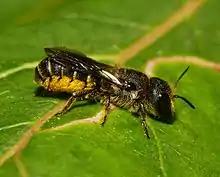 Heriades is a genus of bees in the family Megachilidae. Fairly small and usually black, they are found all over the world. There are more than 130 species worldwide, roughly 25 species in North and Central America, but only 3 species are native east of the Rocky Mountains. European species such as H. truncorum can be found on the east coast of the US. Like other bees in the tribe Osmiini, Hoplitis and Ashmeadiella, they nest in cavities in wood excavated by other insects, or perhaps occasionally pine cones.[1] They separate the cells of their nest with resin (most of the time).[2] [3][4][5]