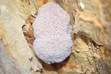 Very immature fruiting body of H. novae-zealandiae, a small solid mass packed with teeth (which will grow and become branched).