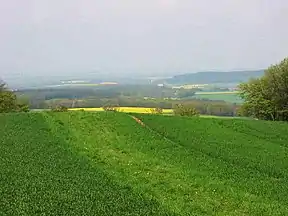 The Herkelstein is a hill, 434.5 m, in the northeastern part of the der Eifel, in the German state of North Rhine-Westphalia. It forms the highest point of the Eschweiler Ridge and lies in the North Eifel Nature Park. Geologically the region is part of the Limestone Eifel, the Herkelstein itself - like the rock formations of the Kakus Caves - is made of Devonian Limestone. It lies between the villages of Weiler am Berge and Holzheim (Mechernich). From the top there is a good long-distance view over the Cologne Bay.