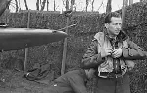 He accumulated further victories against the RAF and on account of his 40th victory achieved on 21 April was honorably mentioned in the Wehrmachtbericht propaganda radio report, the first of three such mentions, on 22 April.[11] The next day, he was the 11th officer or soldier of the Wehrmacht honored with the Knight's Cross of the Iron Cross with Oak Leaves (Ritterkreuz des Eisernen Kreuzes mit Eichenlaub) which was presented to him by Adolf Hitler.[3][10] On 18 October, Joppien was appointed Gruppenkommandeur (group commander) of I. Gruppe of JG 51. He succeeded Oberleutnant Richard Leppla who had temporarily led the Gruppe after its former commander, Hauptmann Hans-Heinrich Brustellin had taken been transferred.[12] The Gruppe was withdrawn from operations at the English Channel on 25 May 1941 and relocated to Krefeld Airfield for a short period of maintenance and overhaul.[13]