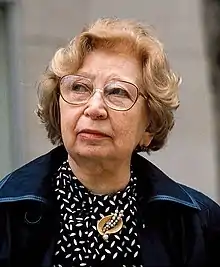 Hermine "Miep" Gies (Dutch: [mip ˈxis];[lower-alpha 1] née Santrouschitz; 15 February 1909[1] – 11 January 2010) was one of the Dutch citizens who hid Anne Frank, her family (Otto Frank, Margot Frank, Edith Frank) and four other Dutch Jews (Fritz Pfeffer, Hermann van Pels, Auguste van Pels, Peter van Pels) from the Nazis in an annex above Otto Frank's business premises during World War II. She was Austrian by birth, but in 1920, at the age of eleven, she was taken in as a foster child by a Dutch family in Leiden to whom she became very attached. Although she was initially only to stay for six months, this stay was extended to one year because of frail health, after which Gies chose to remain with them, living the rest of her life in the Netherlands.