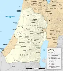 - ↑ H. H. Ben-Sasson, A History of the Jewish People, Harvard University Press, 1976, ISBN 0-674-39731-2, page 246: "When Archelaus was deposed from the ethnarchy in 6 AD, Judea proper, Samaria and Idumea were converted into a Roman province under the name Iudaea."
