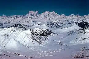Hess Mountain, also known as Mount Hess, is an 11,940 ft (3,640 m) elevation glaciated summit located on the crest of the Alaska Range, in Alaska, United States.[4] It is the seventh-highest peak in the Hayes Range which is a subrange of the Alaska Range.[1] This remote peak is situated 13.3 mi (21 km) west of Mount Hayes, and 90 mi (145 km) south of Fairbanks. Mount Deborah, the nearest higher neighbor, is positioned 2.8 mi (5 km) to the west. Precipitation runoff from the mountain drains into tributaries of the Susitna and Tanana River drainage basins. The mountain's name was reported in 1912 by the United States Geological Survey.[5] The first ascent was made May 24, 1951, by Alston Paige, Dick Holdren, Ed Huizer, Howard Bowman, and Elton Thayer.[6] The first ascent via the North Ridge was made May 23, 1976, by Steven Hackett and Thomas Hillis.[7]