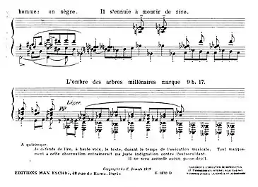 - ↑ Myers, Erik Satie, p. 81. Satie had used this device, which can cause needless difficulties for the player, as early as in his Sarabandes (1887).