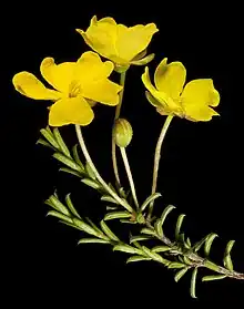 3. 1 2 3 "Hibbertia lineata". FloraBase. Western Australian Government Department of Biodiversity, Conservation and Attractions.