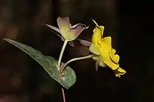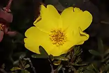 Hibbertia perfoliata is a species of flowering plant in the family Dilleniaceae and is endemic to Western Australia. It is a weak, ascending or prostrate, spreading shrub that typically grows to a height of up to 40 cm (16 in). It flowers from September to December or from January to March and has yellow flowers.[2] The species was first formally described in 1837 by Stephan Endlicher from an unpublished description by Charles von Hügel and Endlicher's description was published in his book Enumeratio plantarum quas in Novae Hollandiae ora austro-occidentali ad fluvium Cygnorum et in sinu Regis Georgii collegit Carolus Liber Baro de Hügel.[3][4] The specific epithet (perfoliata) means "perfoliate".[5]