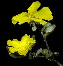Hibbertia quadricolor is a species of flowering plant in the family Dilleniaceae and is endemic to the south-west of Western Australia. It is a sprawling to ascending shrub that typically grows to a height of 10–50 cm (3.9–19.7 in) and produces yellow flowers between July and October.[2]