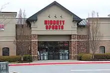 Hibbett Sports, Inc. is an American publicly traded holding company for Hibbett Sporting Goods, a full line sporting goods retailer headquartered in Birmingham, Alabama. As of January 29, 2022, the company operated approximately 1,096 retail stores, which include 900 Hibbett Sports stores, 179 City Gear stores, and 17 Sports Additions athletic shoe stores in 35 states.[1] Hibbett Sports, Inc. operates sporting goods stores in small to mid-sized markets, in the Southeast, Southwest and lower Midwest regions of the United States. States with the most stores are Georgia (97), Texas (97), and Alabama (90). Its stores offer a range of athletic equipment, footwear and apparel. The company's primary store format is the Hibbett Sports store, an approximately 5,000 square foot store located primarily in strip centers which are frequently influenced by a Wal-Mart store.[3]