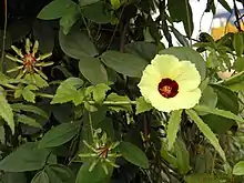 Hibiscus surattensis, the bush sorrel or wild sour, is a widespread species of flowering plant in the family Malvaceae.[2] It is native to the seasonally dry tropical (and subtropical) Old World, and has been introduced to many islands of the Indian Ocean.[1] As the common names imply, it is eaten as a leafy green by local peoples.[2]