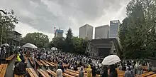The Hibiya Open-Air Concert Hall (Japanese: 日比谷野外音楽堂, Hepburn: Hibiya Yagai Ongakudō) is an outdoor theater in Hibiya Park, Tokyo, Japan.[2] There are actually two concert halls - the smaller was erected during the Meiji era, and the larger was first built in the Taishō era. The larger venue is colloquially abbreviated to "Yaon" (野音).[1][3]