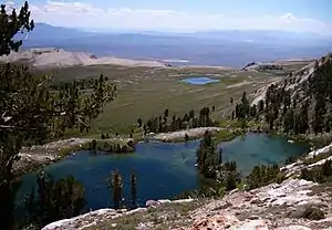 The Hidden Lakes are a pair of glacial tarns in the Ruby Mountains, in Elko County in the northeastern part of the state of Nevada.[1] They are located on a shelf on the Ruby Crest above Soldier Basin, at approximately 40°44.6′N 115°17.0′W / 40.7433°N 115.2833°W, and at an elevation of 9,500 feet (2,900 m). They have a combined area of approximately 9 acres (3.6 hectares), and a depth of up to 32 feet (9.8 m).