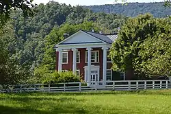 Hidden Valley, also known as Warwickton, is a historic home located near Bacova, Bath County, Virginia. It was built in 1858, and is a two-story, five-bay, brick structure with a hipped roof in a Greek Revival / Late Victorian style. It has a rear ell. The front facade features a pedimented tetra-style portico with Ionic order columns, placed over the central three bays of the five-bay facade. The entrance is styled upon a design on Plate 28 in Asher Benjamin's stylebook, The Practical Carpenter (1835).[3]