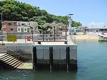 There are public piers in Pak A, Tung A and Sha Kiu, but there is no public ferry service to High Island.[16] Sai Kung Man Yee Road (西貢萬宜路) runs through the northern part of High Island, roughly along High Island Reservoir, from West Dam to East Dam. The 9A minibus route is the only public transportation that can reach the East Dam of the High Island Reservoir, meanwhile urban taxis and new territories taxis are also allowed in Sai Kung Man Yee Road.