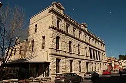 Within twelve years of Fremantle being settled in 1829, High Street was considered the main road of the area.[3] The street was named by the Surveyor-General of Western Australia John Septimus Roe,[4] in line with the traditional naming of main streets in England.[5] The east–west route linked the Round House at Arthur Head to Saint John's Church of England in Kings Square.[3] High Street was first paved in 1858 with Yorkshire flagstones; however, initially only the northern side of the road was paved.[3] In 1881, the extension of High Street commenced after Saint John's Church sold land for the Fremantle Town Hall, and a right of way through Kings Square, to the Fremantle City Council.[3][6][7]