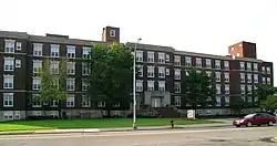 The Highland Park General Hospital sits on a 6-acre (2.4 ha) at the western edge of Highland Park, in an area that is primarily residential.[3] The complex includes three separate buildings. The primary building faces Glendale, and includes the original hospital building, built in 1918, and the attached nurses' residence (1925).[3] The other two buildings are located behind the main unit, and consist of the power plant/laundry buildings (builtin in 1921 and 1940, respectively) and the Contagious and Psychopathic Units (built in 1926).[3]